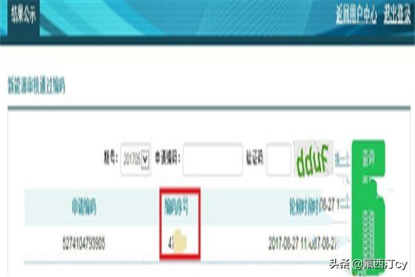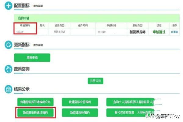 在"个人小客车配置指标申请表"中查询