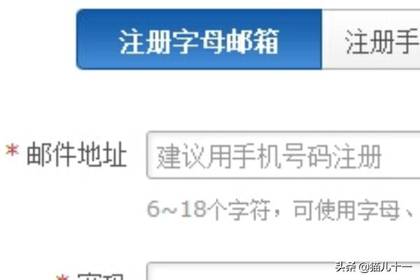 2.点注册,填写注册信息。可以看到可以注册的有126、163、yeah.net的邮箱,这几个都属于网易的免费邮箱。有三种注册方法,字母邮箱,手机号码邮箱,VIP邮箱。通常注册字母邮箱就可以了。注册字母邮箱,填写邮箱地址,地址名称随便起,6~18个字符,可使用字母、数字、下划线,需以字母开头。@后面可以选126.com、163.com、yeah.net.