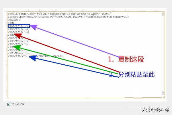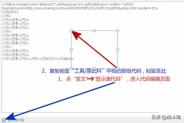 code网页如何做表格?1、登陆自己的博客;点“发文”→“显示源代码”,进入代码编辑页面;复制前面“工具/原料”中给的那组代码,粘贴至编辑器。
