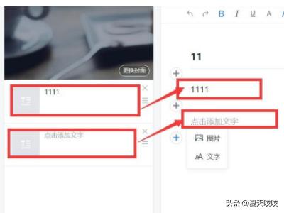 3、编辑一段正文,左侧则会出现相同的内容,可以理解为预览框;每点击一次圆圈中的+号,则会新增一个预览框,可输入文字内容或图片。如图所示:
