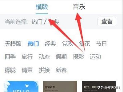 4、文章编辑完成后,点击右侧的模板与音乐,可插入相应的模板以及音乐,选选中后即可预览。符合自己预期,觉得合适后,即可发表/分享该篇文章。如图所示: