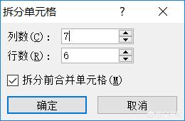 3、选中前6行,点击表格拆分单元格,输入7列,行数不变,拉动列线条调整下各列的宽度。