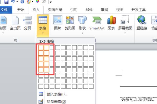 4、弹出的界面,我们点击选择2*5的表格;