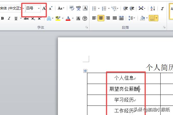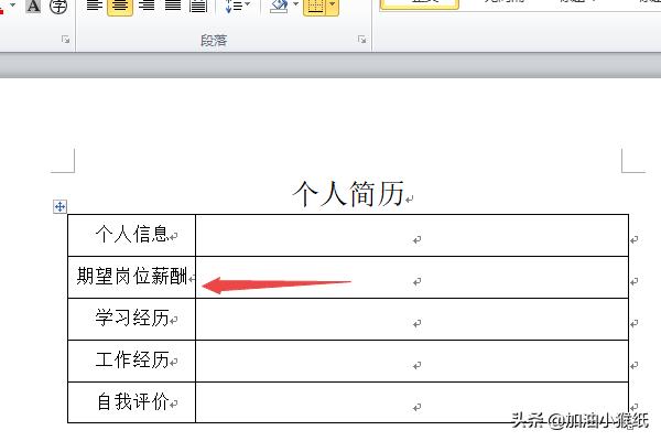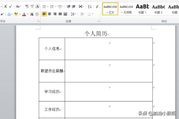 9、最终结果如图所示,这样就做出个人简历的表格了。