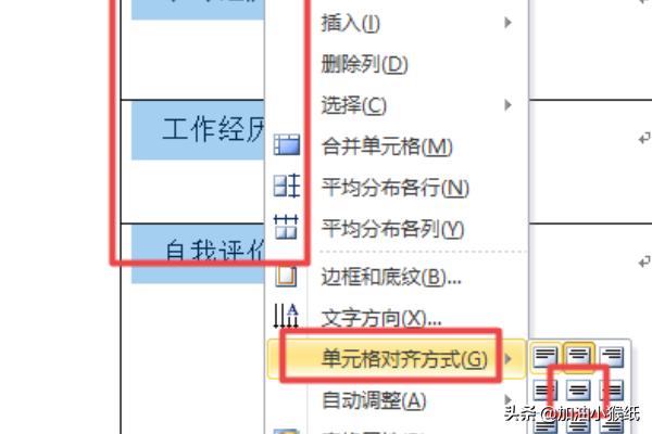 8、之后,我们选中文字的单元格,然后右击选择单元格对其方式,弹出的界面,我们点击选择居中对齐;