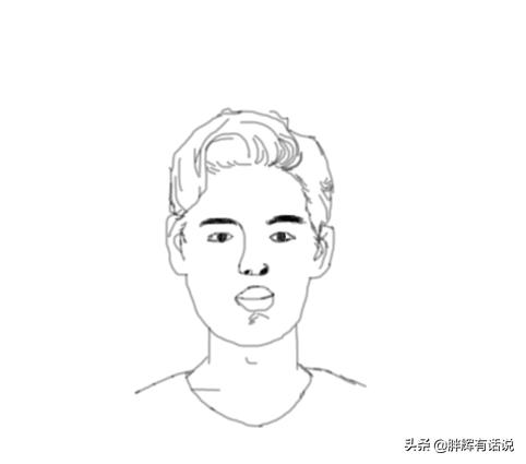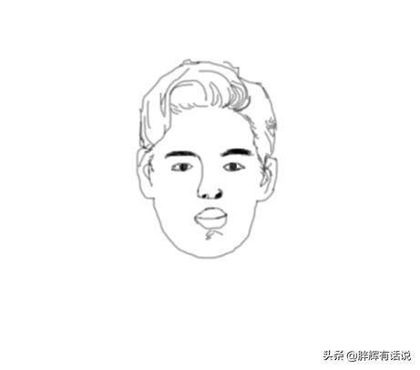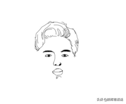 4、在眼睛鼻子、嘴部的基础上再画出男孩的头发造型,如图所示: