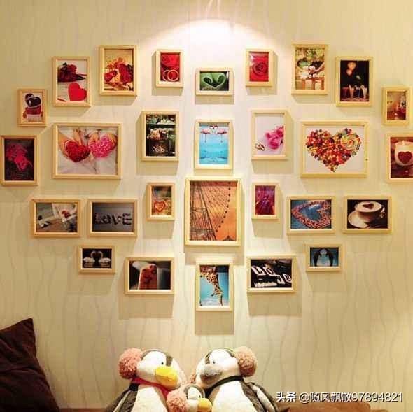 照片墙的设计和摆放是有讲究的。当我们将整体形状设计好后,就可以安装照片了。在安装的过程中,建议童鞋们先将大照片排列进去,如果是对称图形的话,就从中心点摆起,这样做有利于拼凑形状。