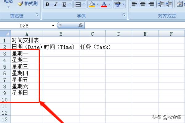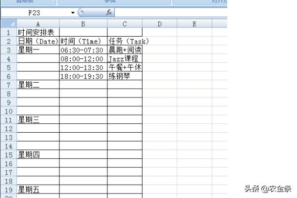 第三步:设计表头,包括日期、星期、时间等基本信息。