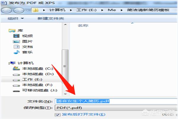 3、然后会弹出来一个”发布为PDF或XPS“的对话框,看好保存格式是PDF: