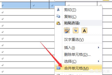 5、选择要合并的格,右击鼠标,合并单元格,如图。