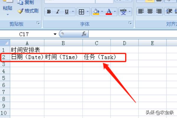 第三步:设计表头,包括日期、星期、时间等基本信息。